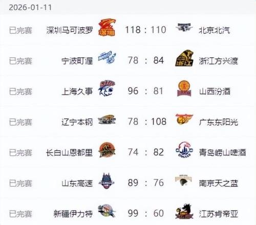CBA积分榜最新排名出炉!辽篮惨败广东跌至第10:上海第1山西第7