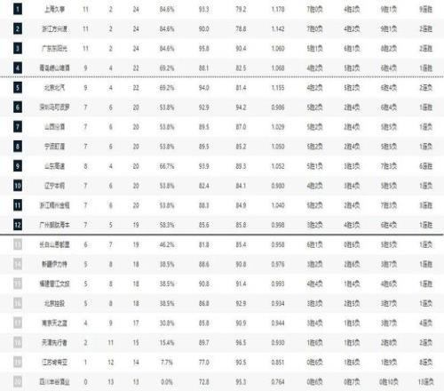 CBA最新排名!北京跌出前四,612混战,山东浙江连胜逐渐稳固!